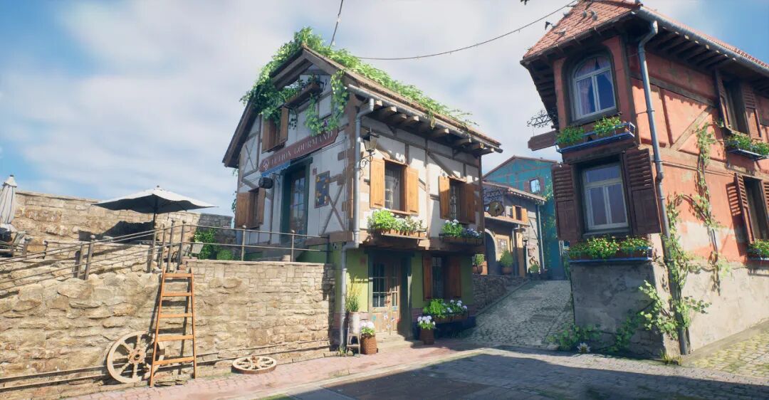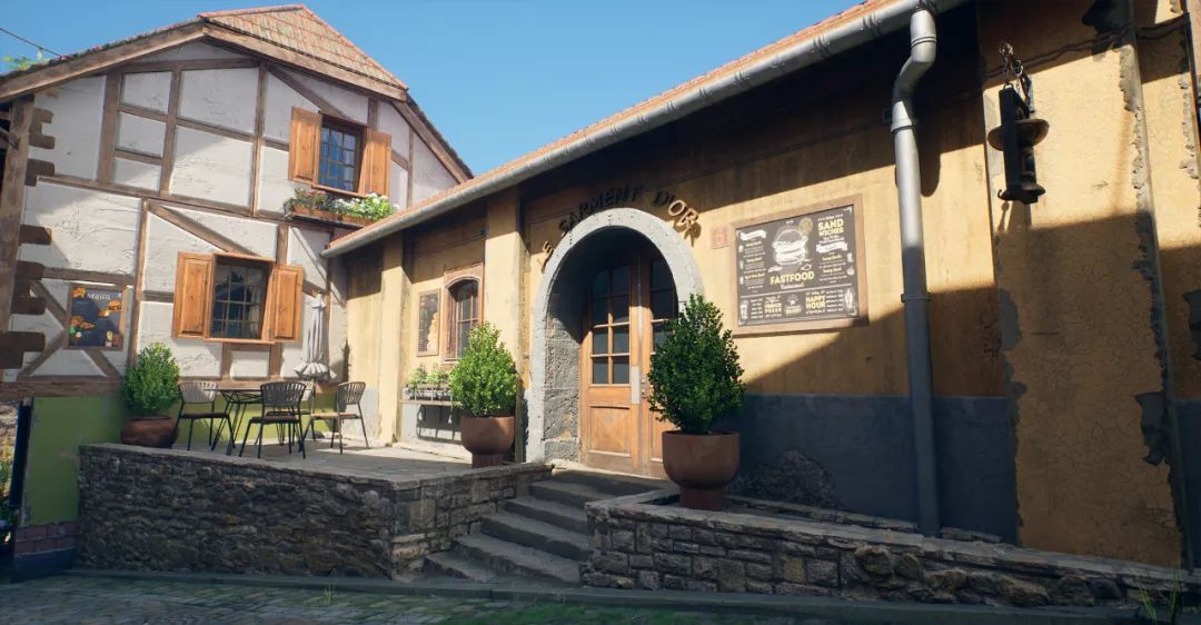 既然话都话都说到这份上,就先来欣赏一组UE5-FPS游戏场景,真的细腻,真实感极强,跟随着镜头,恍惚感觉自己正闲逛在欧洲小镇的每一条小道上。