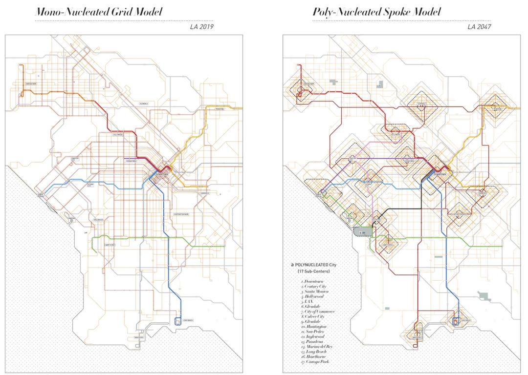 如果像洛杉矶这样的城市能做到这一点,它就能充分释放其多中心都市结构的潜力,从一个以汽车为导向的个人主义城市过渡到一个更加混合、密集、可步行和公平的城市,在未来几十年里再次重塑其DNA。