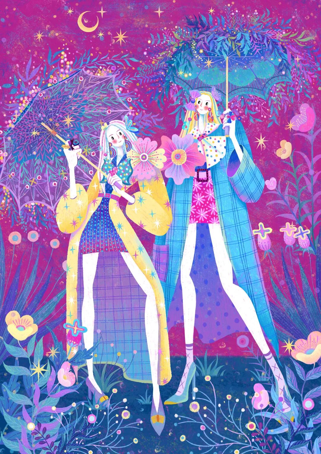 刚开始接触插画时,大家可能就会觉得没有灵感没有想法,不知道怎么画一张完整的图,这个时候可以先多去看一些素材,多去积累一些想法,然后把你觉得好看的元素累积到一个图里面。