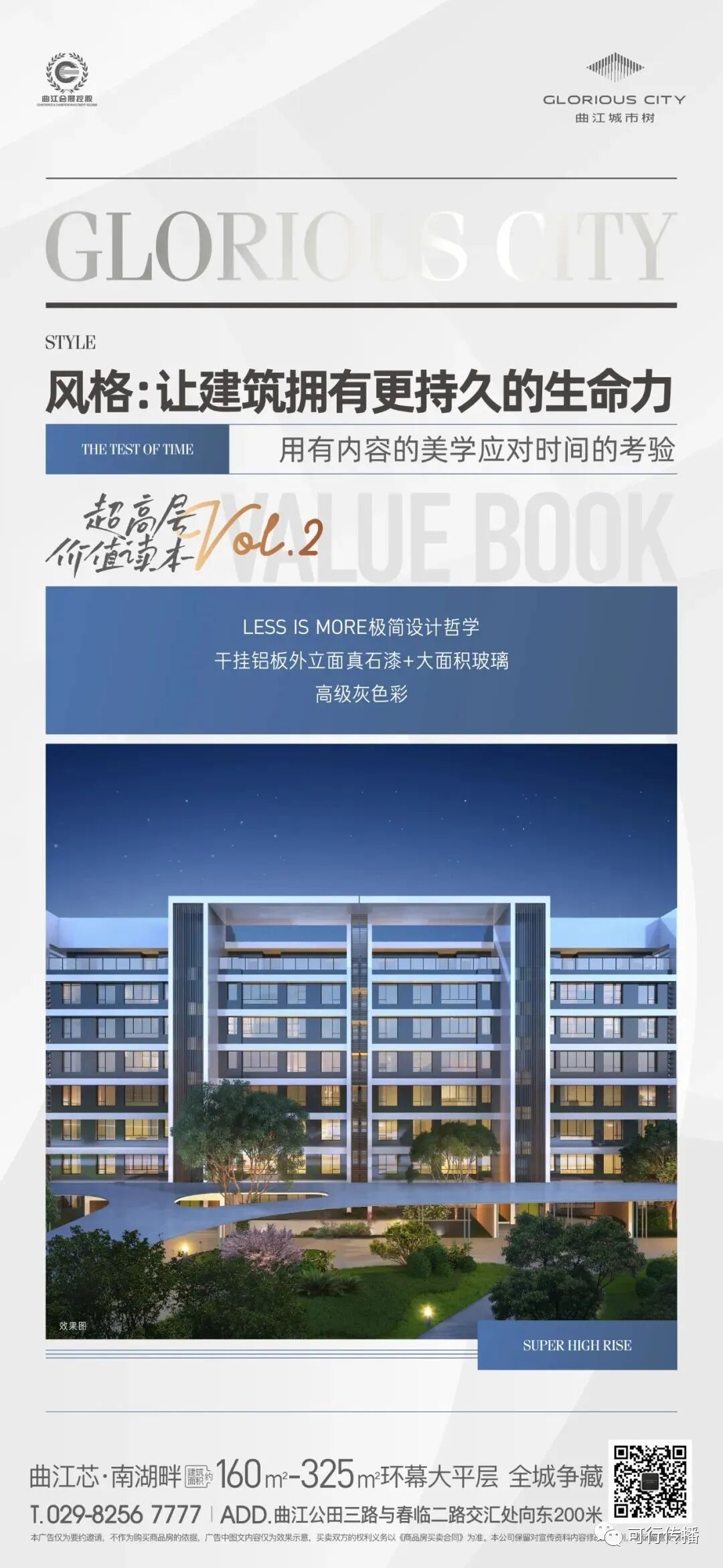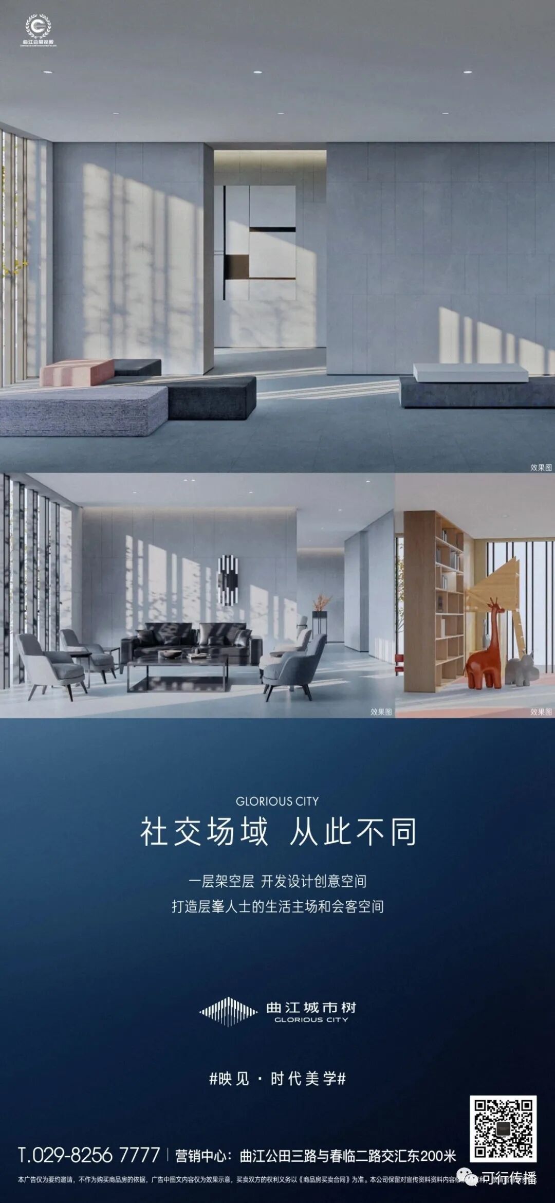 曲江城市树由世界大师联合执笔,以极简建筑承载艺术生活、以极致空间契合艺术人生、以极顶思维对位艺术精神,这是我们为曲江城市树破解出的全新立意,区别于单调的产品价值输出,为项目的豪宅属性和艺术属性做强背书。