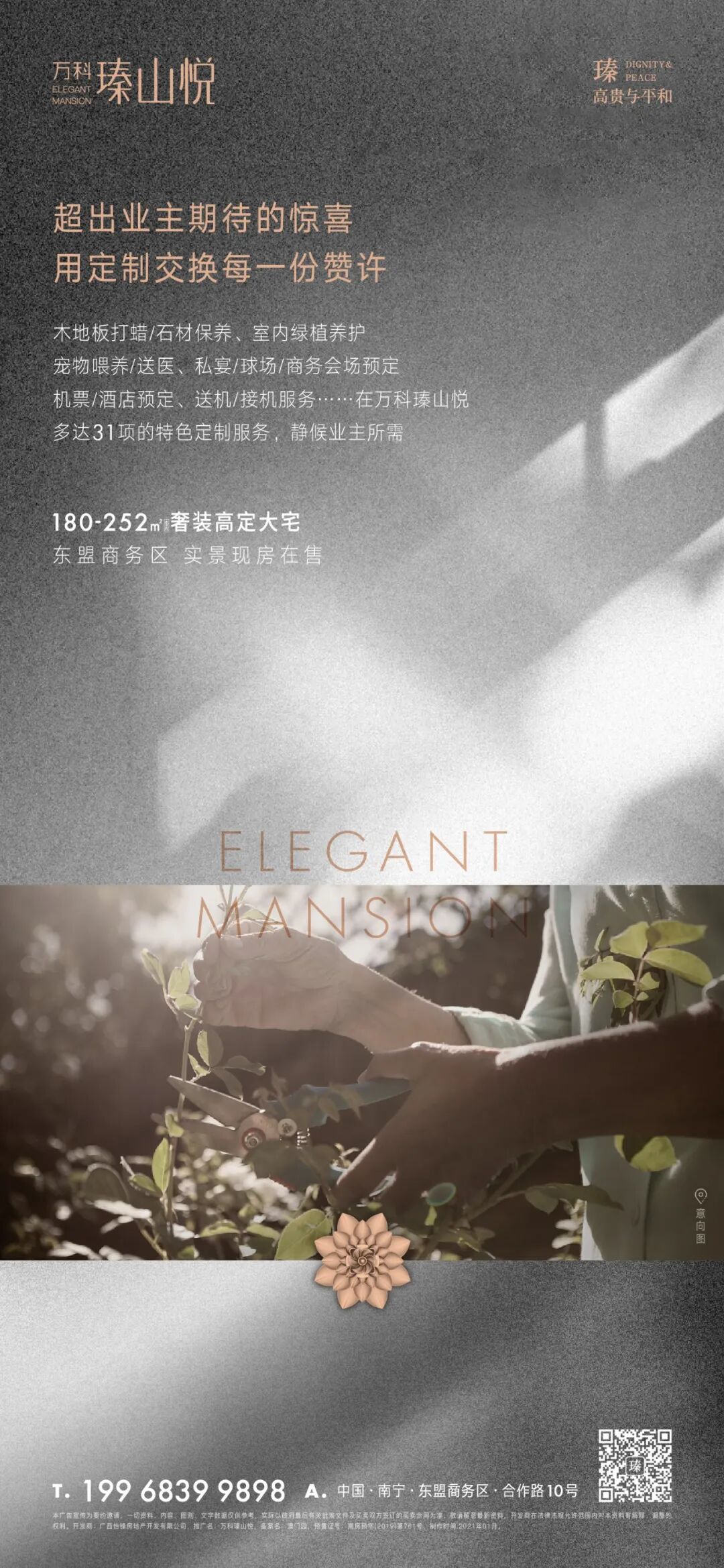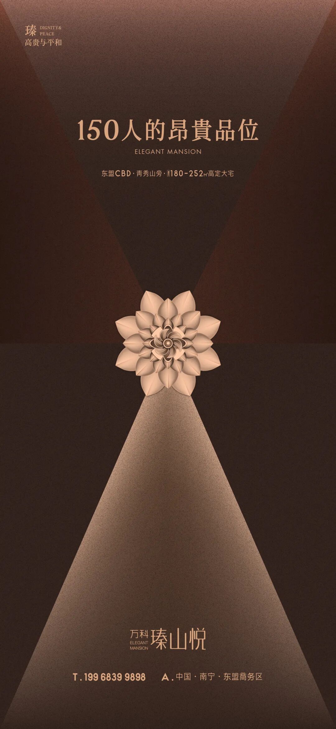 主广告语“150人的昂贵品位”,从精神角度出发,廓定一个时代的南宁塔尖群像;我们引入时尚界的高定(Haute Couture)概念作为瑧山悦的属定表达,将定制化、非标化、专属化的价值内核展露无遗。