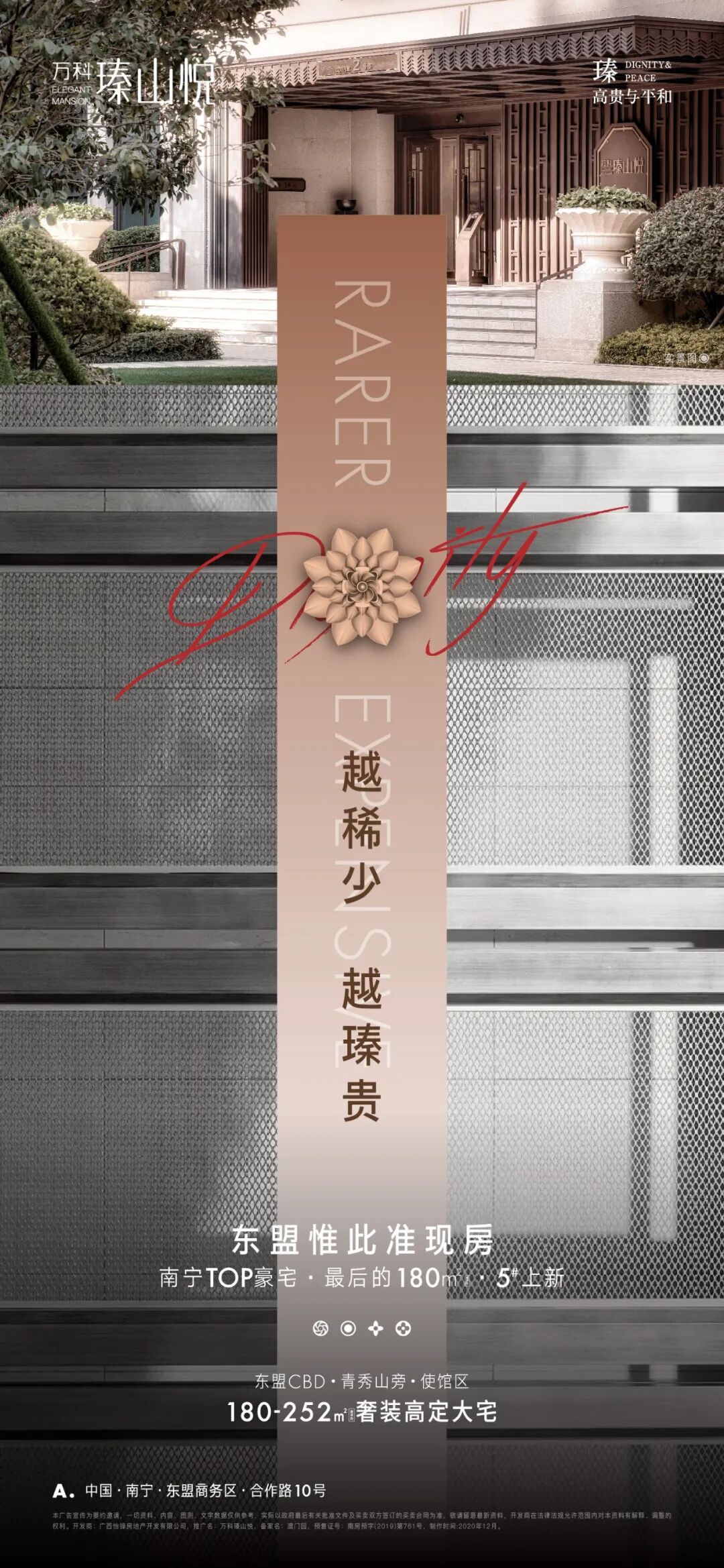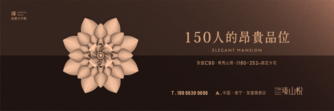 瑧山悦,全国第四座「瑧」系产品,择址南宁东盟商务区最后一块可供开发的土地。毗邻5A级青秀山风景区,城市公园、文化与教育资源环绕,可谓集万千宠爱于一身。整盘仅150套住宅,近7000元/㎡的装标,高于市场近三倍的单价,无论是禀赋、定位,还是投入,瑧山悦足以接过万科「瑧」的光环。