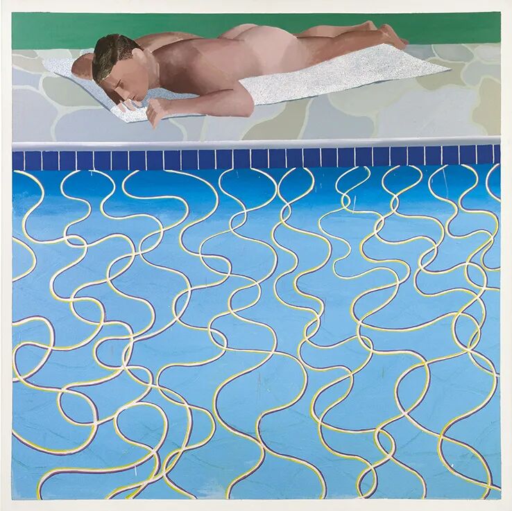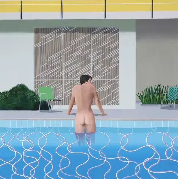对于一位成长于二战期间英国的年轻艺术家,在经历了贫困和配给紧缩之后,洛杉矶的游泳池充满了超乎想象的奢华和异国情调。在他笔下,游泳池很快就成了洛杉矶的缩影,加州的地理标志,代表着享乐主义、性自由和直截了当的生活乐趣。