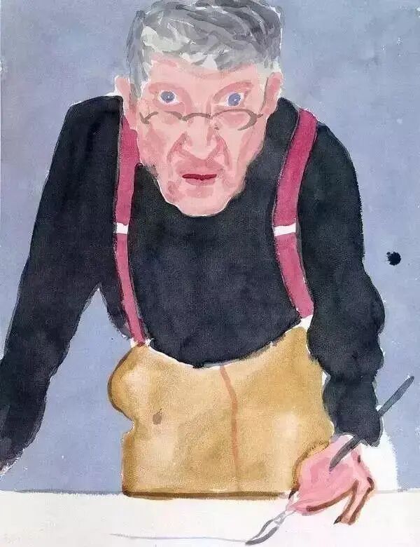 这幅自画像创作于艺术家七十岁出头时。乍看之下,画中的霍克尼似乎是在直视观众的眼睛。但仔细观察后,会觉得他在绘画时可能是在看着自己的眼睛,或者是在看着镜子里的自己。有趣的是,画中的霍克尼在画纸上只画了一道笔触,而我们作为观众,看到的显然是一幅完整的肖像。