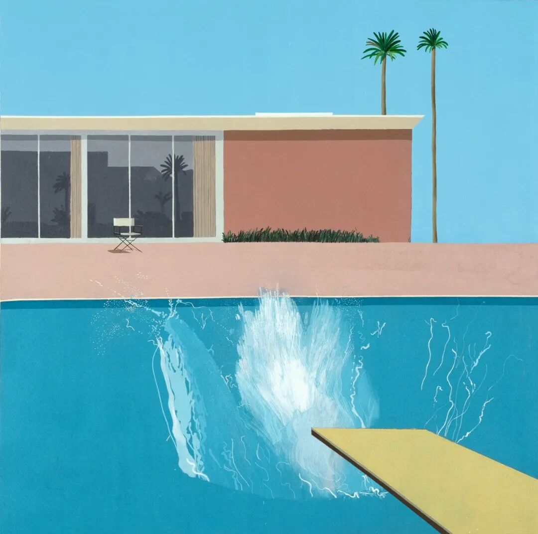 霍克尼用水晶般的蓝色水池为这座城市创造了一种独特的形象。通过描绘私人游泳池的原始、奢华、乏味和孤独的荣光,霍克尼在他的作品中捕捉到了洛杉矶的时代精神。