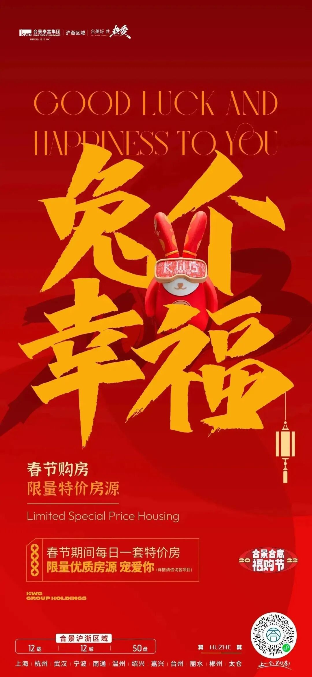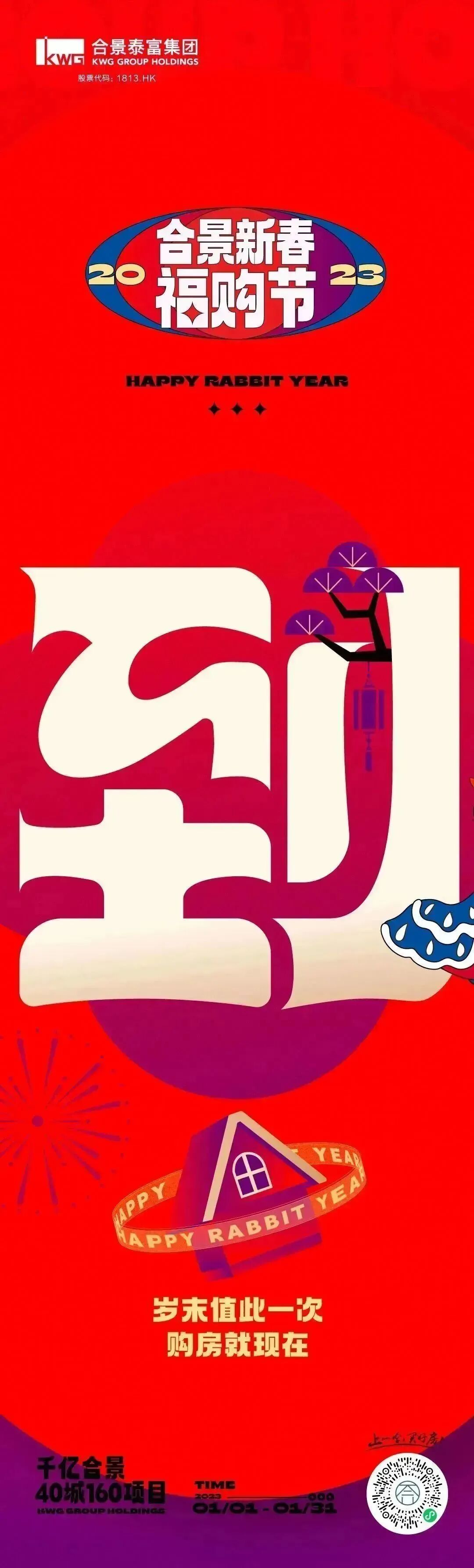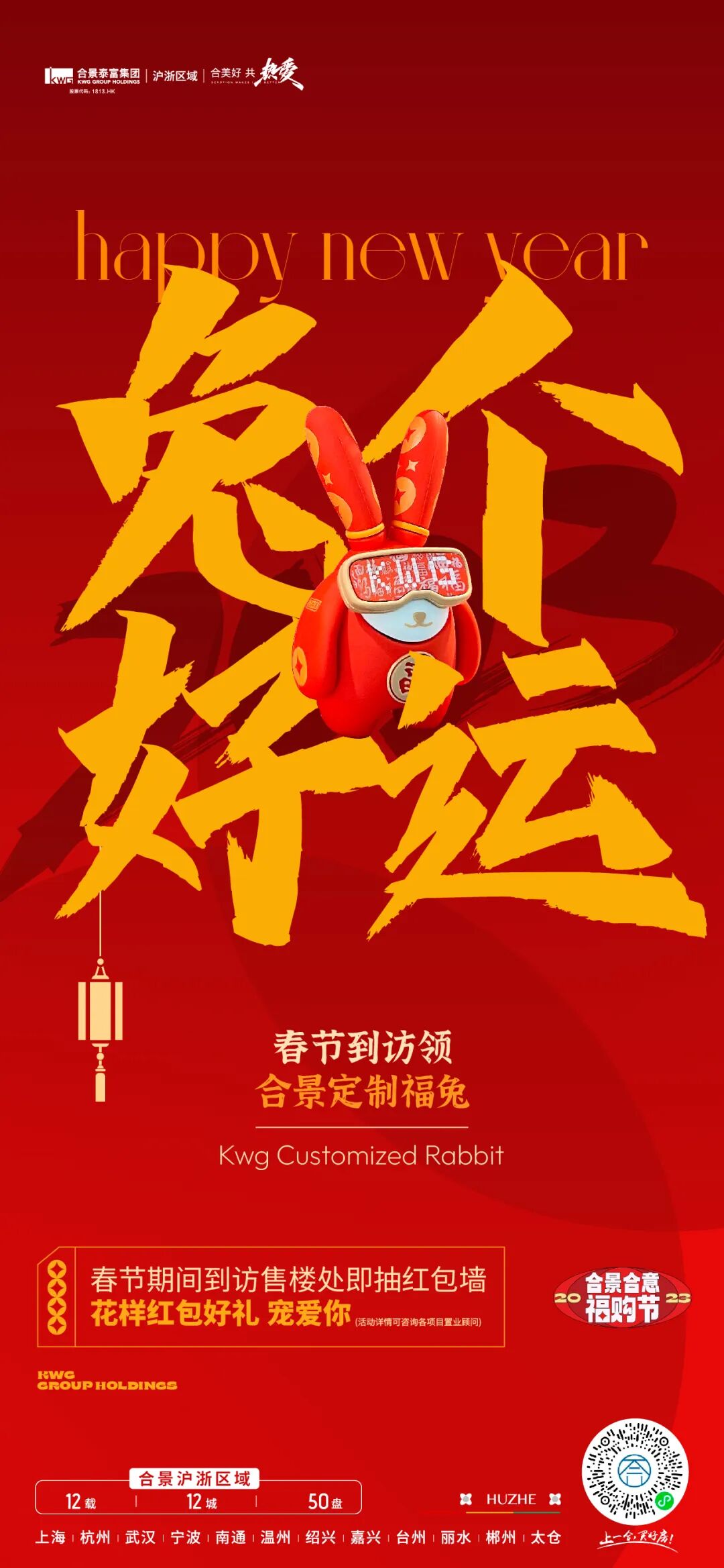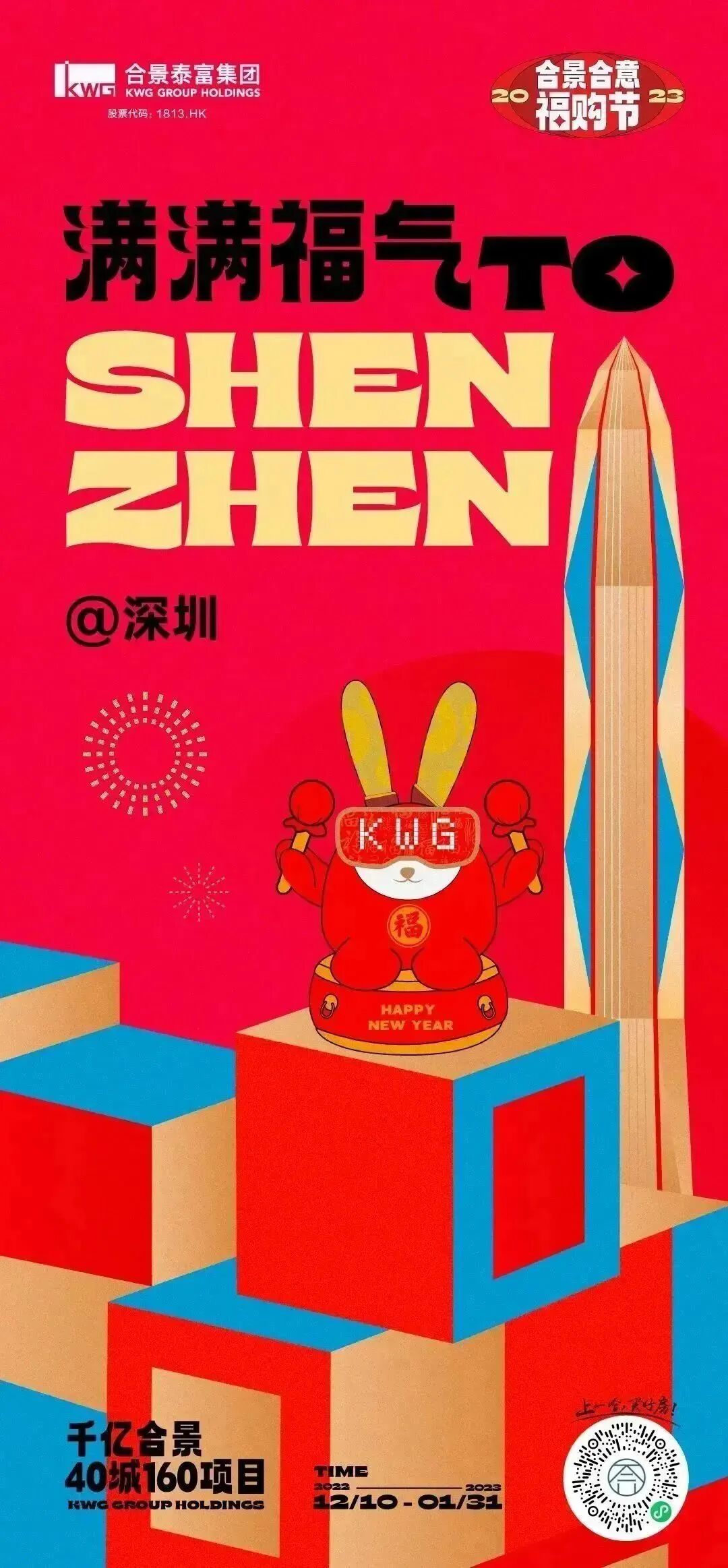 在2022年底至2023兔年前夕,我们为合景泰富打造了一场“满满福气TO YOU”的跨年福购节。为了让品牌传播更具识别度,更抓眼球,经过多次脑暴,决定打造一款发福兔IP,作为这次campaign的超级符号,让其具象化落地。同时契合兔年新春佳节,人们追求多福的心愿,让发福兔成为美好幸福代言兔。