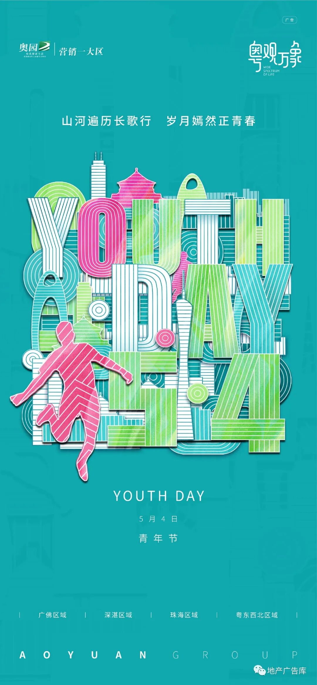 以青年节英文配数字做主体架构,搭配活力动感的青年形象,展现青年当潮不让之气。与时代同频,及时当勉励,山海青年志,与世界谈笑风生。