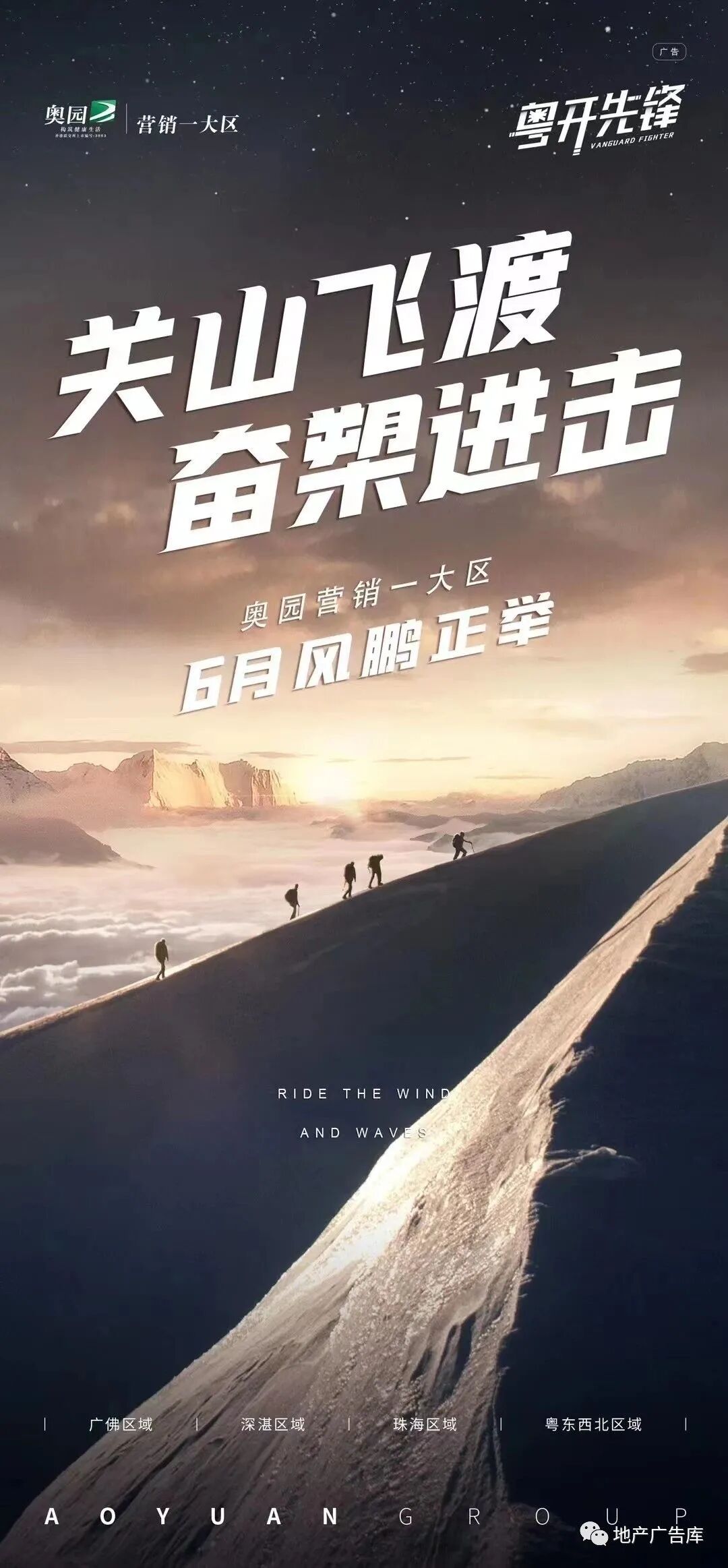 粤开先锋:2022年地产环境难关环环紧扣,以世界极限地貌映衬逐月面对的非同寻常的挑战,勠力攻坚的人物象征广佛团队永葆干劲,逢山开路,风雨无阻,展现广佛区域追江赶海、敢当先锋的气概。