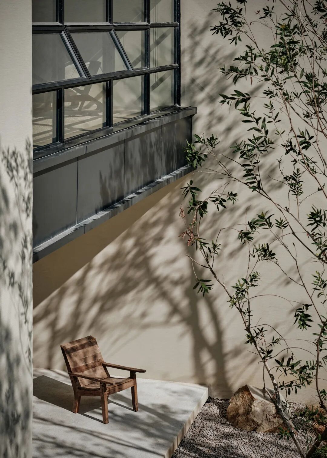 漂浮的草坪,平静的水面,为局促的景观空间构筑出丰富的层次。我们希望在庭院空间继续延续此风格,让光影与水成为叙述者。特殊的景墙材质与形态变化,赋予内院空间以光影流动的感受,让空间中上演光影的游戏。