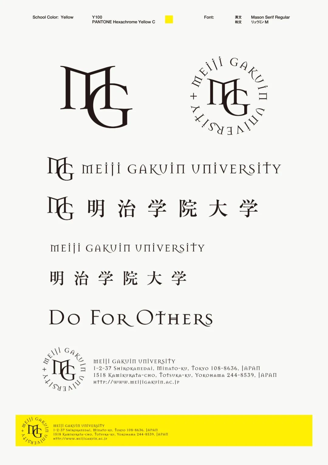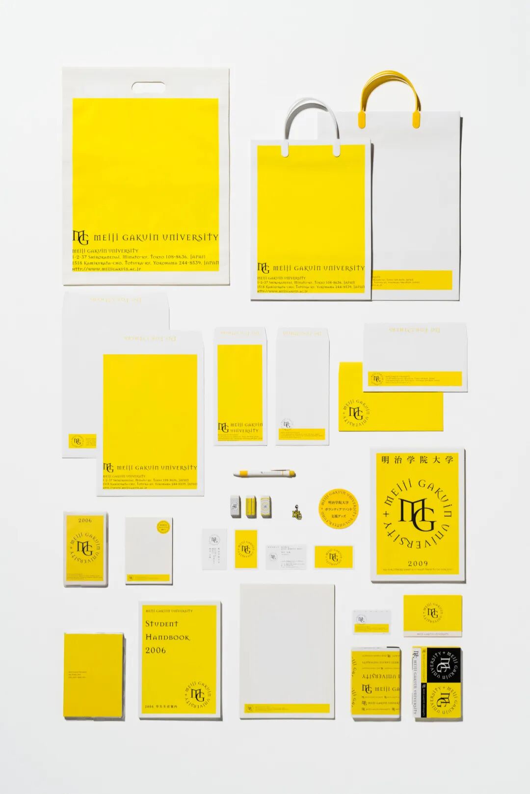 头文字MG组合和校色黄色为核心元素,设计了雅致和存在感兼备的大学形象LOGO
