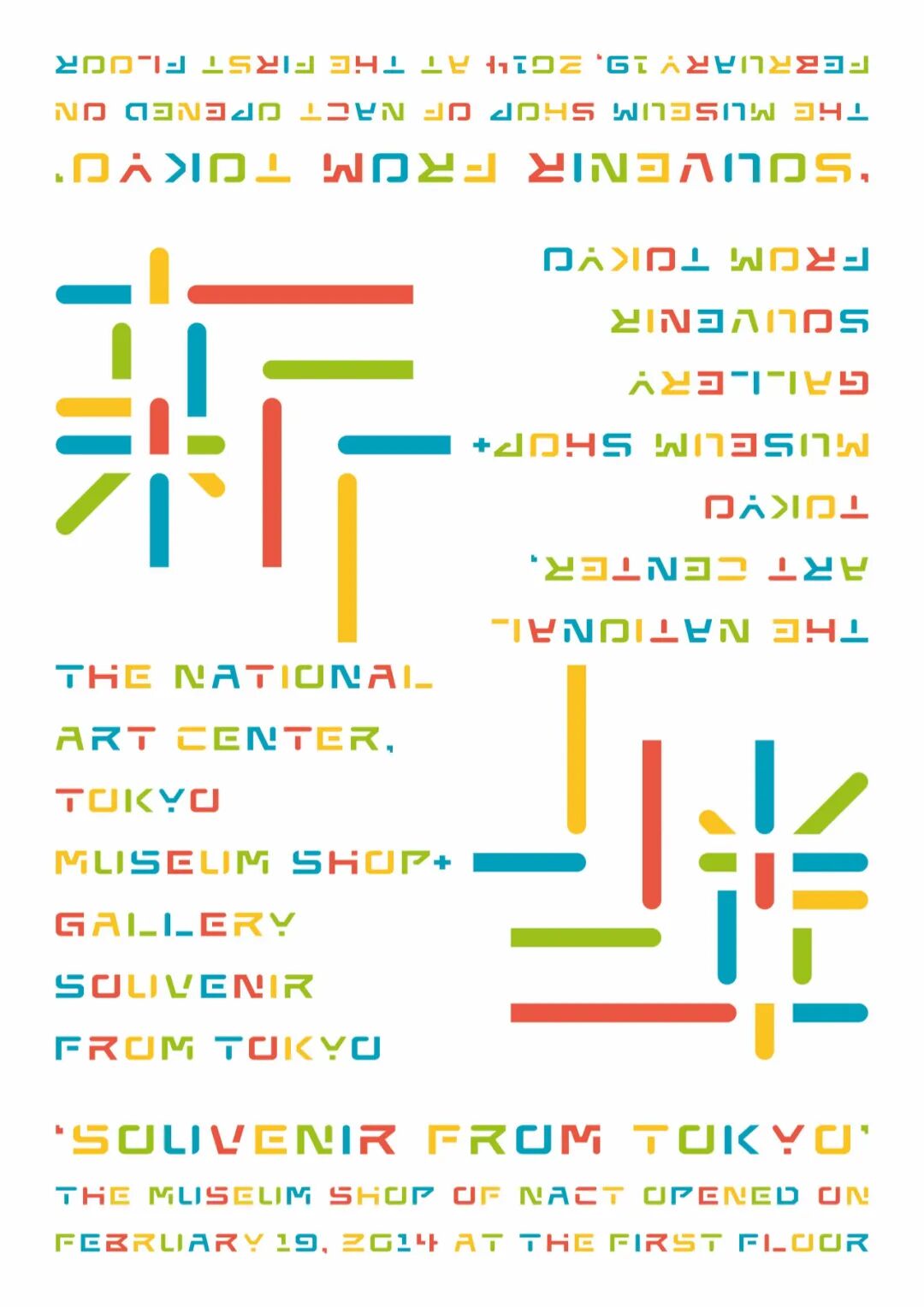 一座“没有馆藏作品”的美术馆,通过汉字“新”为标志设计。其灵感来自建筑家黑川纪的独具特色的可分割展区创意,展馆名称的英文字体设计也沿袭标志设计。整个视觉传达设计风格一致,一气呵成,充分表现了美术馆所应有的建筑物的特性。