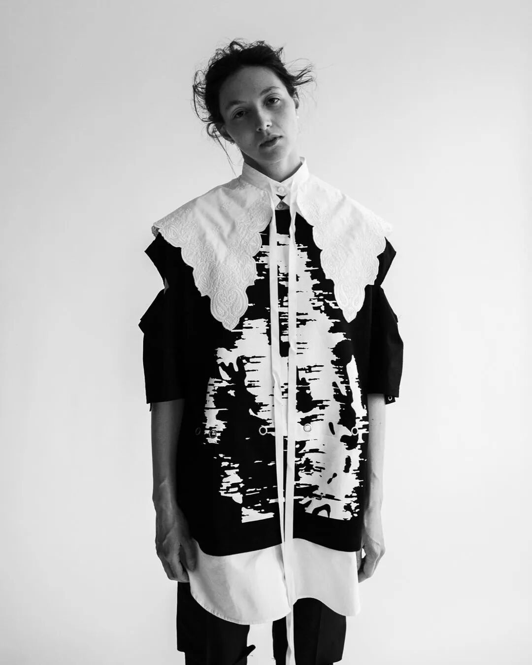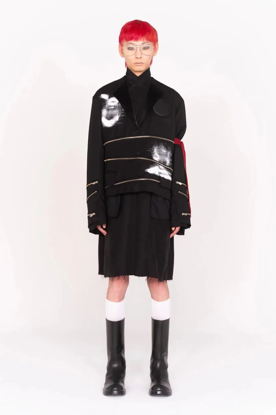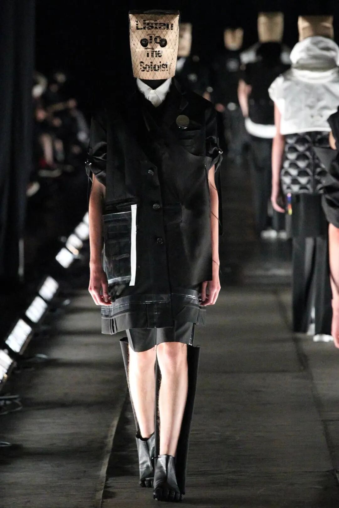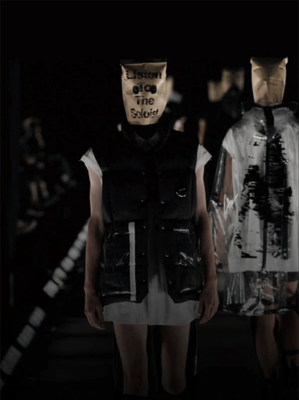 这个系列揭示了对箱包产品的质疑——这只是消费主义的产物。看到Runway上过于饱和的箱包产品,想象着模特不带包的状态,开始质疑携带包的必要性。几近亵渎地将其融入到衣服内,袋状但不是袋子的结构,超出口袋的定义。