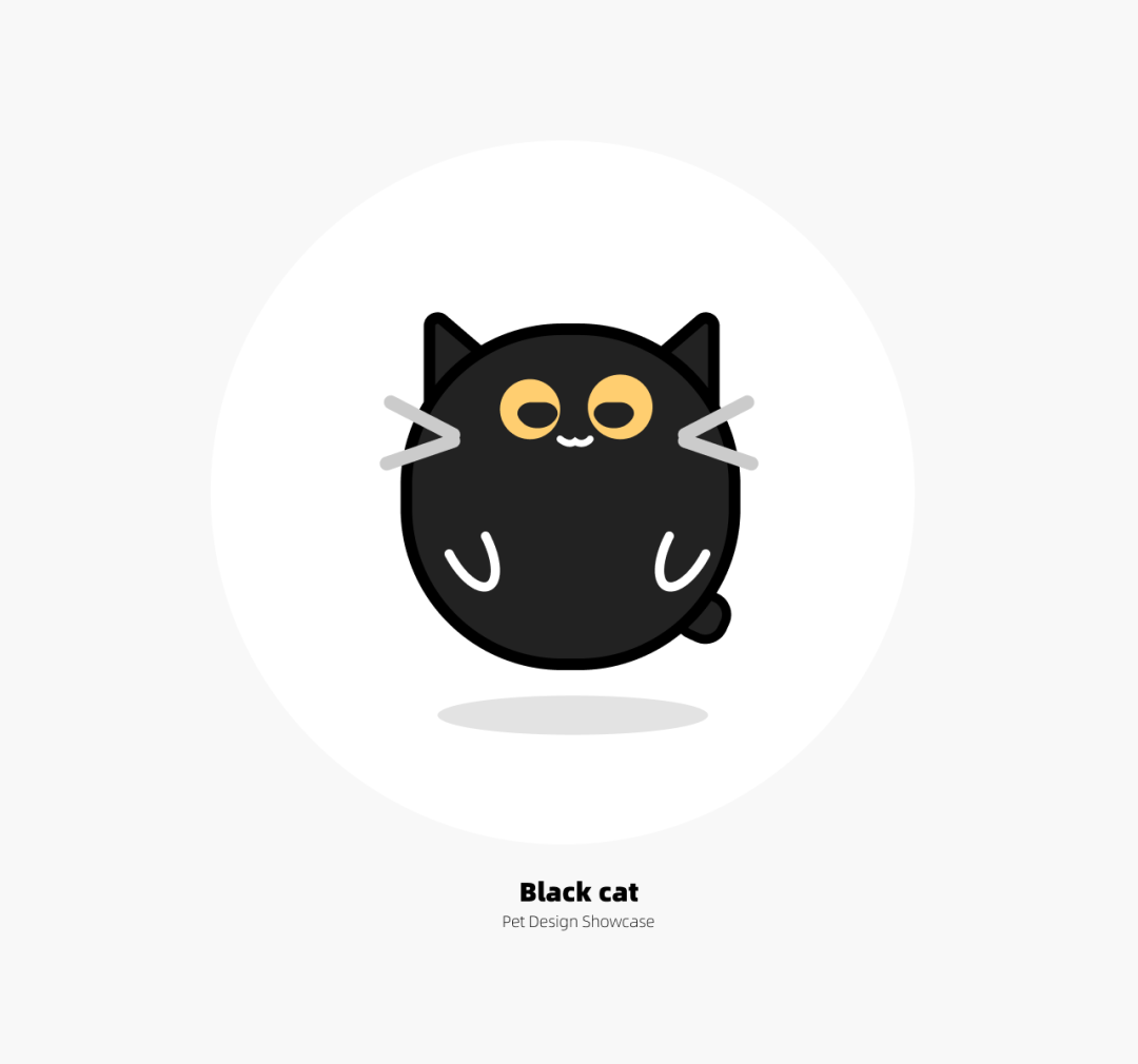但是,这里我产生一个想法,是不是可以让手脚和头部进行融合,一起融合在一起呢,甚至没有脚,直接让它悬浮在空中,这样既可以区别于传统宠物,图形也可以比较饱满,比如像下面这种类型: