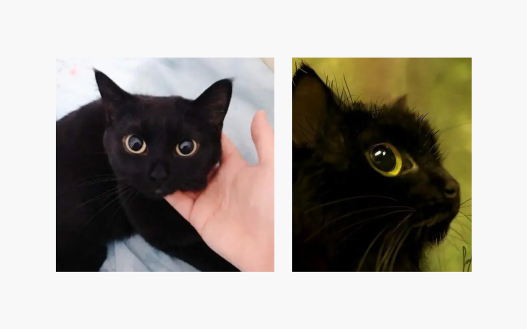 接下来,同样的道理,我们再来一个黑猫,特征也很明显,比如黑色身体,大眼睛,黄色眼睛、猫胡须等等: