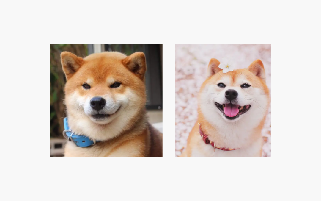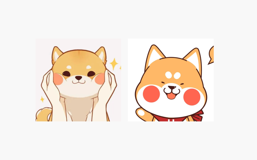 比如,柴犬,我们可以提炼出黄白身体,脸上有一部分白色、三角形的耳朵等等,白色眉毛: