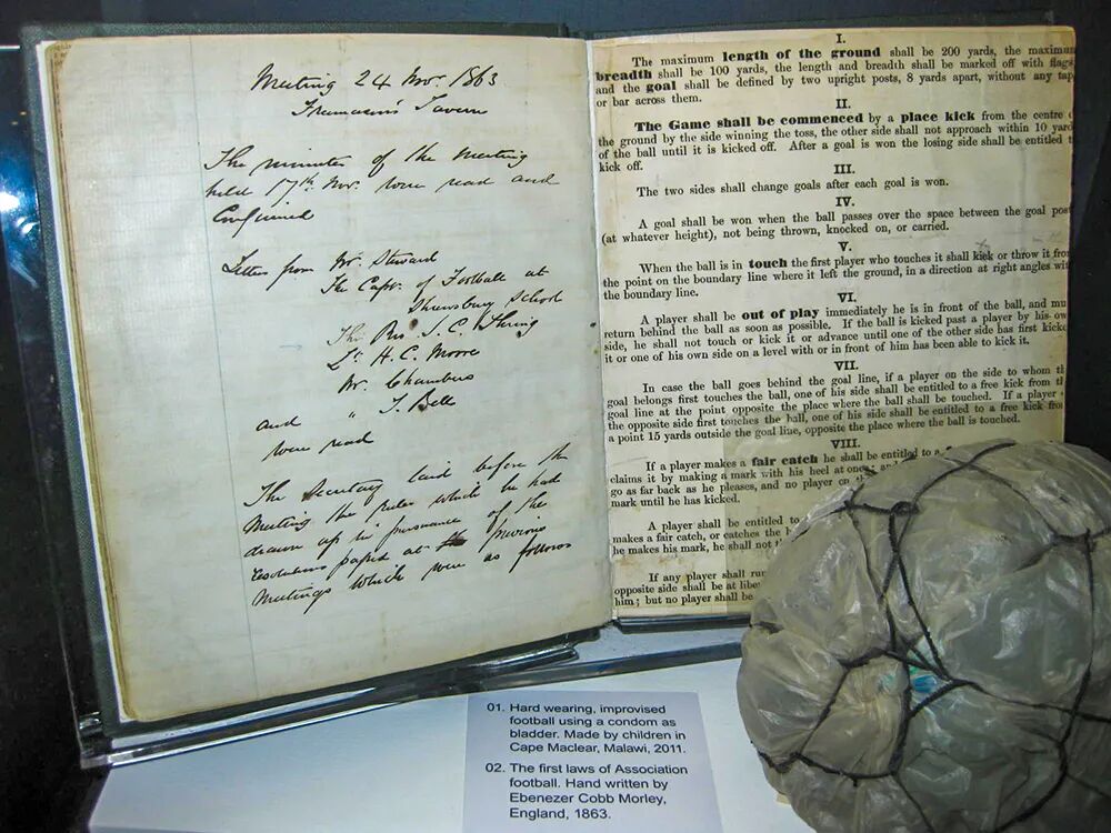这些规则深深地刻下了伦敦和剑桥的烙印,比如球员数目设定在11人就是源自宿舍间比赛的人数约束——宿舍学生人数(当时每间宿舍住宿10个学生)加一名教师。